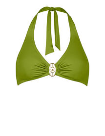Halterneck-Bikini-Top mit Deko-Element am Dekolleté. Im Nacken und Rücken zu binden. Herausnehmbare Schaumschalen. Voll gefüttert. 85% recyceltes Polyamid, 15% Elastan.