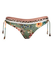 Bikini-Hose mit seitlicher Schnürung und zarten Perlen als Schmuckanhänger. Das goldfarbene Logo ist dezent auf der Rückseite angebracht.