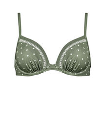 Bügel-Bikini-Top mit integrierten Soft Cups und verstellbaren, abnehmbaren Trägern, die im Nacken gebunden werden können. Ein Clipverschluss im Rücken bietet auch größeren Cups Halt.