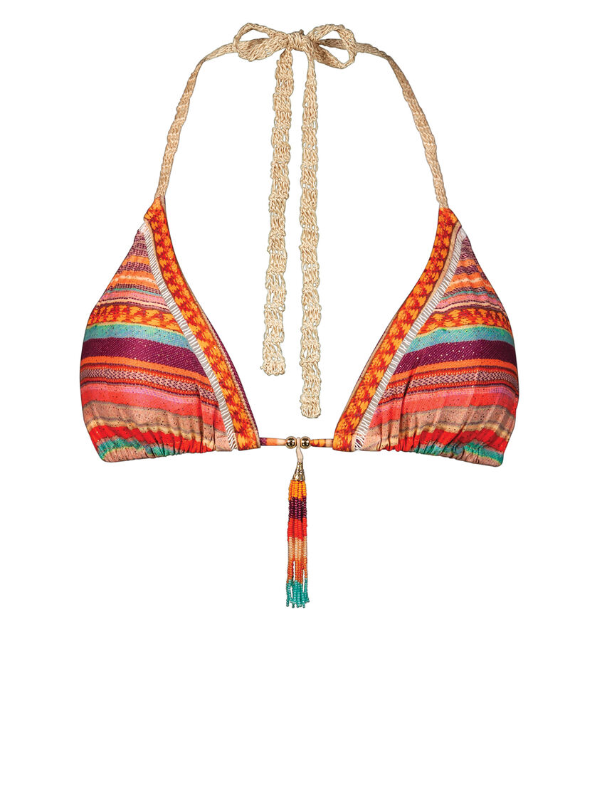 Triangel-Bikini-Top mit Soft Cups und handgeperlter Quaste am Dekolleté. Im Rücken zu binden.