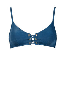 Minimalistisches Bralette mit dünnen, abnehmbaren Trägern und Soft Cups. Schnürung am Dekolleté mit goldfarbenen Ösen. Clipverschluss im Rücken.