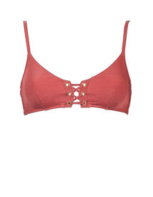 Minimalistisches Bralette mit dünnen, abnehmbaren Trägern und Soft Cups. Schnürung am Dekolleté mit goldfarbenen Ösen. Clipverschluss im Rücken.