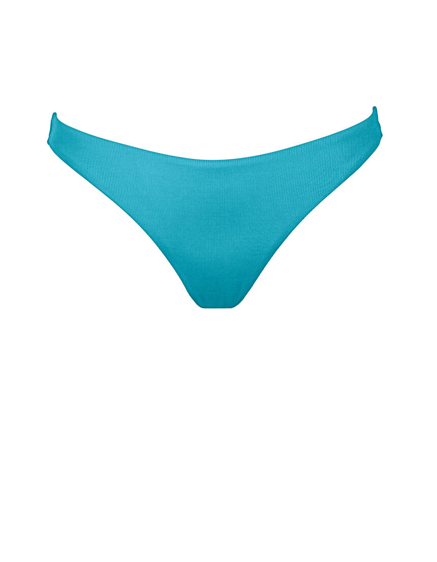 Small high-low bikini pants with a high leg opening. Subtle, gold-coloured logo on the back.